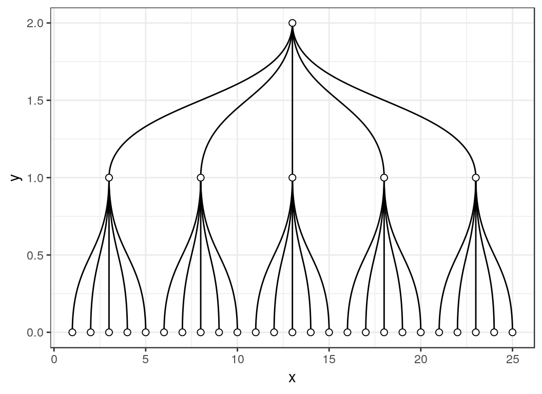 ggraph(tg, 'dendrogram') + geom_edge_diagonal() +